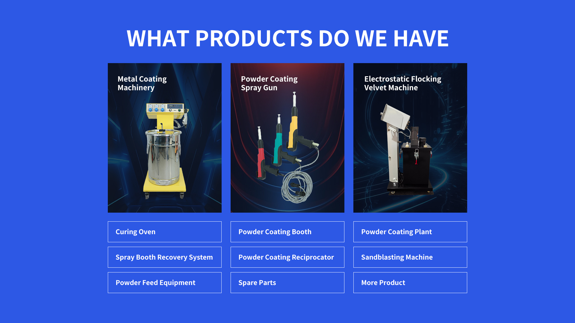 Powder Coating Tools and Equipment include electrostatic spray guns, curing ovens, powder recovery systems, and pretreatment units. Advanced setups integrate conveyor systems for automation.
